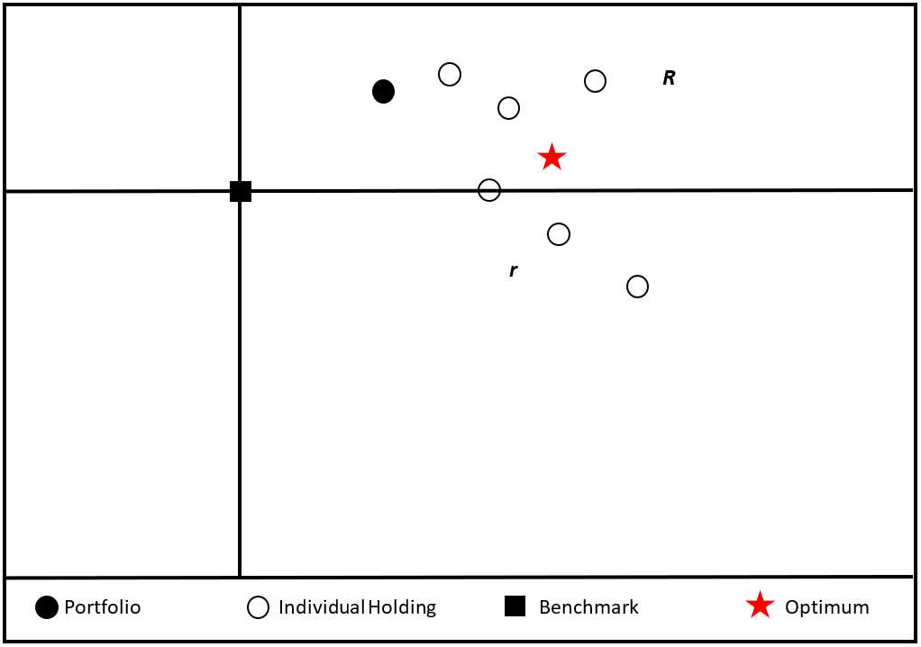 Investors are often faced with the dilemma of maximizing their reward given a risk associated with portfolio diversification. This risk-to-reward relationship is plotted on a two-dimensional graph in rectangular coordinates where the x axis is the side of reward and the y axis is the side of risk. One of the advantages of utilizing Morningstar software is its ability to spit out graphs that figure in risk, reward, alpha, beta, and R-squared given several assets. Alpha measures the difference between a portfolio’s actual returns and its expected performance, given its beta and the actual returns of the benchmark index. Alpha is often seen as a measurement of the value added or subtracted by a portfolio’s manager. Beta is a measure of the degree of change in value one can expect in a portfolio given a change in value in a benchmark index. A portfolio with a beta greater than one is generally more volatile than its benchmark index, and a portfolio with a beta of less than one is generally less volatile than its benchmark index. R-squared reflects the percentage of a portfolio’s movements that are explained by movements in its benchmark index, showing the degree of correlation between the portfolio and a benchmark. This figure is also helpful in assessing how likely it is that alpha and beta are statistically significant. To maximize total return on assets, the investor needs to diversify his portfolio such that his risk to reward outcome is optimally scattered along the north-west region of the second quadrant of the graph. Below is a graphical illustration of atypical investor trends highlighting an optimum scenario. We begin modeling this relationship using a G (gain) function to show the potentially substantial risk associated with investing in any set of assets.